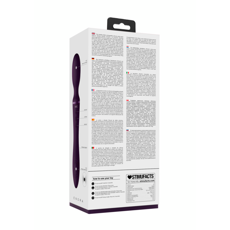 L'ENORA, bacchetta e vibratore a doppia estremità, a onde di impulso, vanta una testa della bacchetta vibrante a 10 funzioni e un'impugnatura vibrante a onde di impulso a 10 funzioni, che lo rendono uno strumento di piacere perfetto a tutto tondo. I 2 motori ti daranno oltre 100 possibili impostazioni uniche con cui giocare. Realizzato al 100% in silicone medico liscio come la seta, è impermeabile al 100% (ipx7) ed estremamente silenzioso con un livello inferiore a 60 db, il che significa che puoi usarlo ovunque il tuo cuore desideri. Contiene una batteria ricaricabile magnetica agli ioni di litio USB che, quando completamente carica con il cavo USB, fornirà 70 minuti di gioco appassionato. Basta collegarlo e caricarlo!