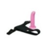 Dildo rosa che può essere fissato alla cinta di neoprene regolabile. Dildo ca. 16 cm di lunghezza, Ø 3,7 cm. Materiale: silicone.