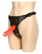 Strap-on completo, comprende uno slip regolabile aperto sul cavallo in semipelle con cinghie regolabili che include due falli in jelly intercambiabili differenti in misura e altezza. Il materiale dei 2 falli è in PVC molto morbido e flessibile, privo di ftalati e sicuro per il corpo.