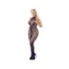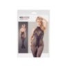 Morbida catsuit in rete elastica con un'evidente decorazione a intreccio sul davanti e sul retro. Con collo in pizzo e schiena libera da togliere il fiato. Aperto all'inguine. Con il piede.