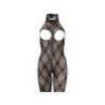 Un vestito da seduzione emozionante! Tuta senza busto in pizzo ad effetto coccoloso con collo alto apribile con una chiusura a velcro. Senza schienale e con una stuzzicante apertura sul cavallo. Con piede. Nero. 100% poliammide.