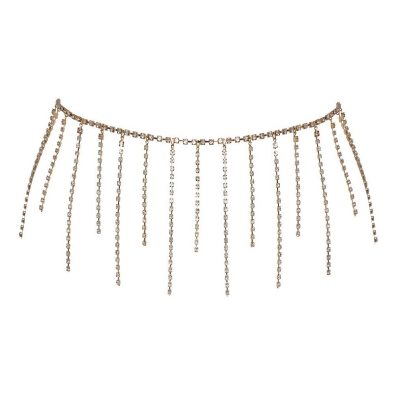 Catena da pancia color oro di Cottelli ACCESSOIRES con catene di strass oscillanti sul davanti e sui lati. Gioiello glamour con chiusura a moschettone regolabile individualmente in vita. Un look elegantemente erotico se indossato a contatto con la pelle. L'abbagliante catena per il ventre può essere abbinata con stile anche a costumi da bagno o ad abiti aderenti come una cintura.