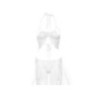 Dite "lo voglio" e mostrate la vostra felicità nuziale con questo set di reggiseno e mutandine da reggicalze. Questo set è dotato di coppe semiaperte, perizoma coordinato, velo di tulle e fiocchi di raso.