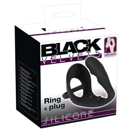 Per momenti salienti estatici! Questo anello nero non solo segna con un plug anale aggiuntivo, ma anche con un ponte perineo attraccato in modo attraente. Piacere puro!