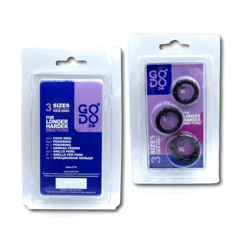 Gli anelli fallici Godo d+ sono estremamente elastici e si adattano alle diverse forme e dimensioni del pene.Una volta messi alla base del pene o sui testicoli aiutano ad avere un'erezione più duratura e possente.