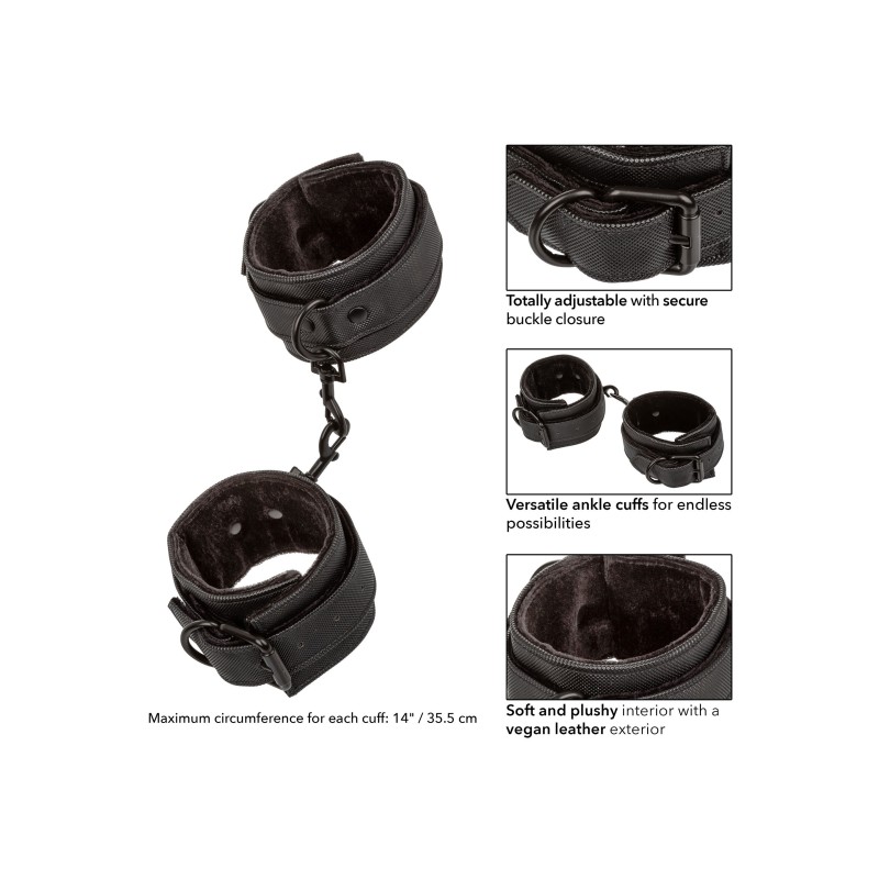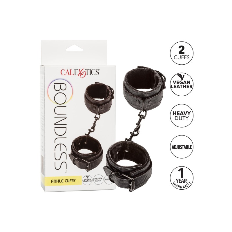 Per quelle notti che hanno bisogno di qualche sfumatura di grigio in più, le Boundless Ankle Cuffs sono esattamente quello che stavate cercando. Il design robusto, con doppia imbottitura e doppia cucitura assicura che il materiale di alta qualità sia saldamente legato insieme, e il design con gancio e anello completamente regolabile assicura che lo sia anche l'utente. Le chiusure universali su una struttura D-Ring con design girevole danno all'utente piena destrezza mentre massimizzano la costrizione e minimizzano il dolore. Avete bisogno di un po' di spazio in più per le gambe? Le chiusure completamente staccabili possono essere rimosse e attaccate alla catena o agli anelli di vostra scelta. Polsini alla caviglia totalmente regolabili con chiusure con fibbia di sicurezza | Fermagli universali e anelli a D con design girevole per la massima destrezza | Interno morbido e lussuoso con esterno in pelle vegana | Doppia imbottitura, doppia cucitura | Design funzionale, resistente e strutturato. Materiale PU (tessuto) | Poliestere (fodera, decorazione a nastro) | Ferro senza nichel (rivetti, anelli a D) | Lega di zinco senza nichel (fibbie, fermagli girevoli)