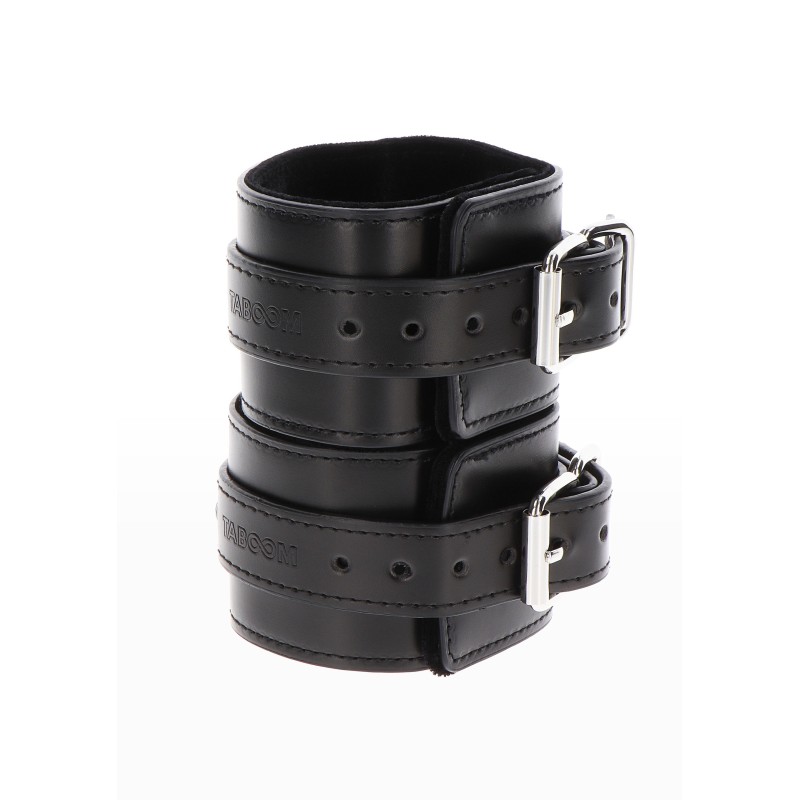 I polsini regolabili TABOOM di alta qualità sono pratici e resistenti. Goditi una buona sessione di bondage o indossalo come accessorio sexy. Le manette robuste e sicure sono rivestite in lussuoso velluto per prevenire irritazioni cutanee, rendendole comode da indossare. Questi polsini TABOOM in pelle vegana non si arrendono. Utilizzi le robuste clip e gli anelli a D per legare le manette l'una all'altra o, ad esempio, alle colonne del letto.