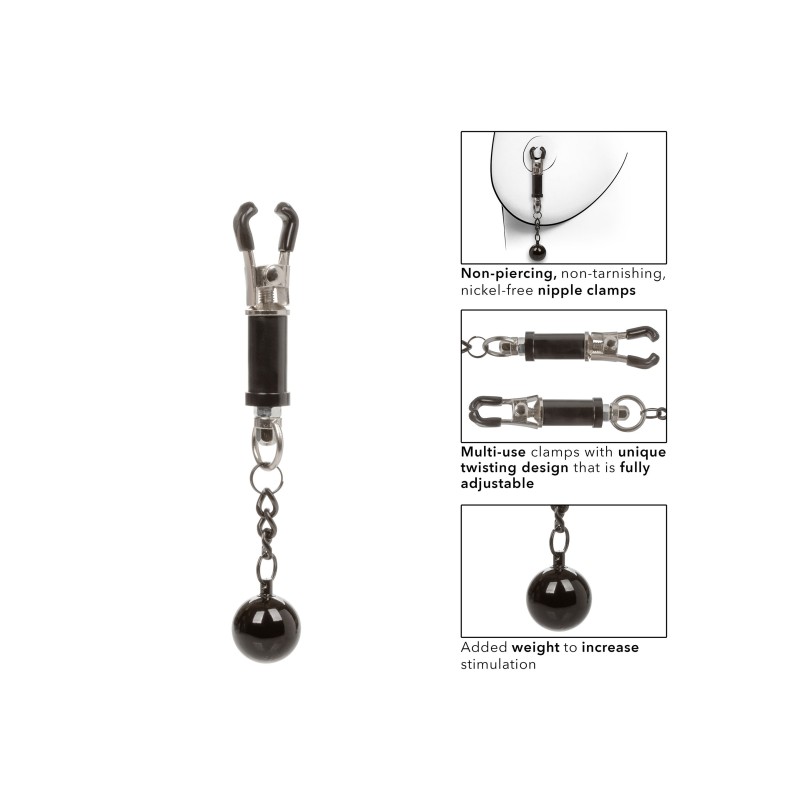 Sfuma ancora di più il confine tra piacere e dolore con i rivoluzionari morsetti per capezzoli con torsione ponderata. Scopri una sensazione più intensa con 2 morsetti per capezzoli regolabili, design girevole unico e peso oscillante. Fissa le fibbie birichine al tuo corpo e goditi ogni stimolazione.