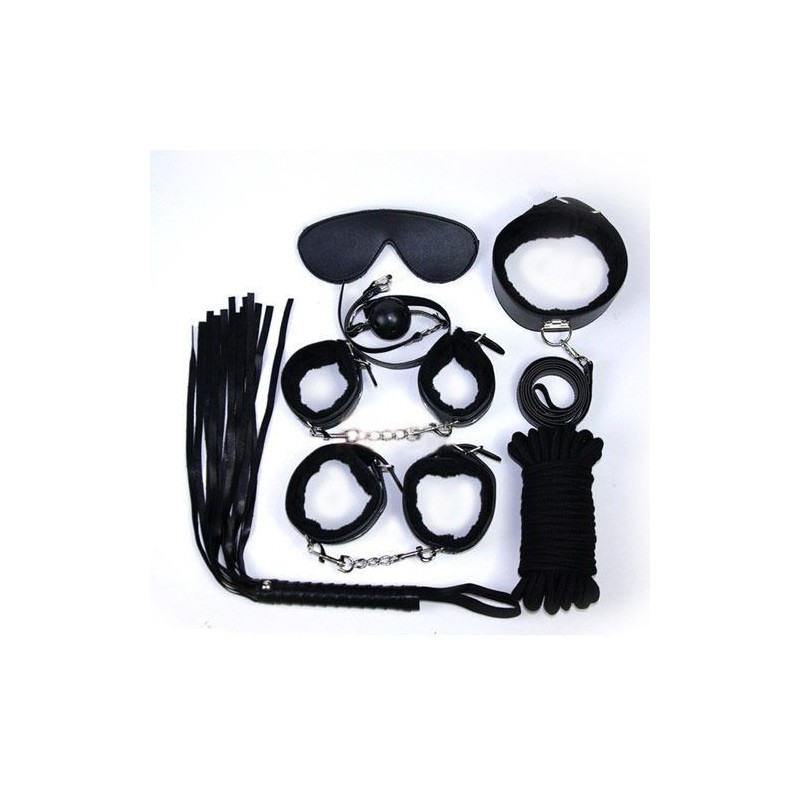Bondage kit nero collare corda frusta fetish manette cavigliere