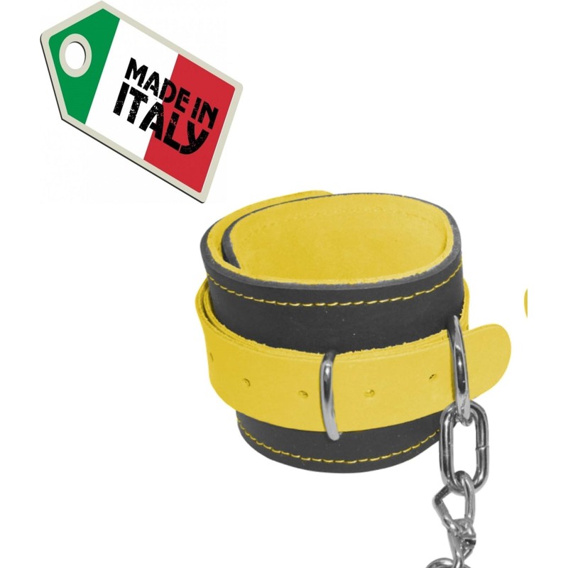 Cavigliere in vera pelle (con interno scamosciato per un maggior comfort)con catena ritorta in ferro nichelato. Prodotto artigianale 100% Made in Italy.