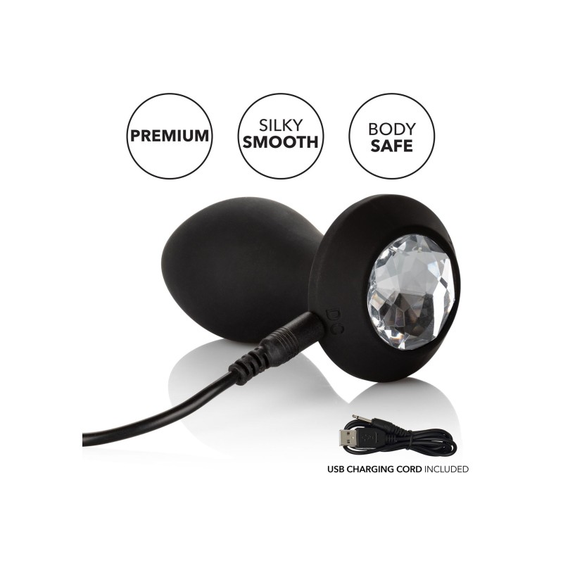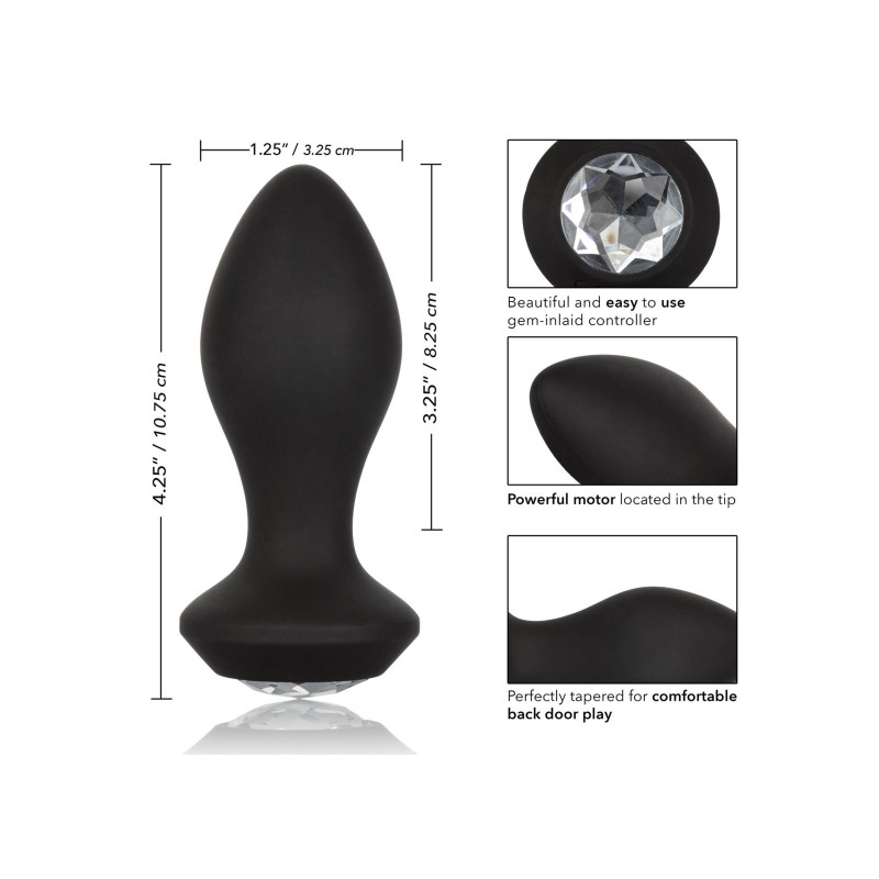 La sonda a cristallo vibrante Power Gem® è una sonda in silicone abbagliante e flessibile creata per facilitare il piacere anale emozionante. Il design flessibile ed ergonomico e i potenti motori a vibrazione consentono a questa sonda di flettersi con i movimenti, offrendo al contempo vibrazioni intense. Concediti un piacere personalizzato mentre l'elegante sonda pulsa con 10 vibrazioni vivaci, pulsazioni appassionate ed escalation erotica. Controlla questa varietà di opzioni orgasmiche con il pulsante gemma di facile tocco.