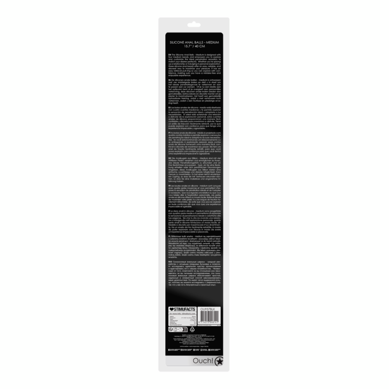 Le palline anali in silicone - Medium sono progettate con quattro perle medie e vi permettono di esplorare e personalizzare la sensazione di penetrazione ideale per soddisfare i vostri desideri. Sia che stiate vivacizzando una relazione, sia che vi dedichiate all'esplorazione personale, queste sfere anali in silicone offrono un modo facile, affidabile e discreto per massimizzare il vostro piacere. Il sistema è dotato di un anello per il recupero facile che consente di esplorare in tutta tranquillità, assicurandovi un'esperienza piacevole e senza errori.