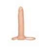 Dildo falllo indossabile . Realizzato in materiale flessibile in colore naturale (carne chiaro) (ca. 16 cm di lunghezza, Ø 2,5 cm) che può essere fissato con un‘asola per il pene (Ø 3 cm) e con un‘altra per i testicoli (Ø ca. 5 cm, espandibile) come „secondo pene“! Nero. Materiale: TPR.