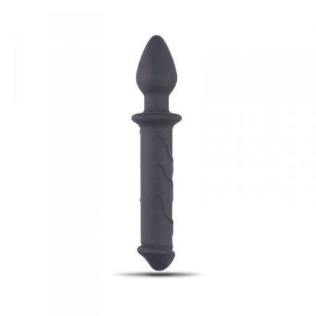 Dildo doppio realistico fallo vaginale anale con butt plug nero morbido in silicone