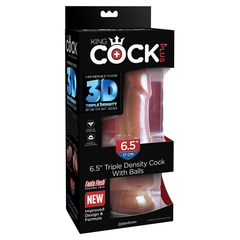 Il dildo King Cock Plus Triple Density ha un'asta interna rigida, una pelle esterna morbida, dettagli di texture realistici e una solida ventosa! Il design e la formula migliorati offrono un realismo superiore con un esterno morbido e realistico, creando la sensazione e la flessibilità di un vero pene. Caratteristiche: Design e formula migliorati | Compatibile con la cinghia | Potente base a ventosa | Meno profumo.