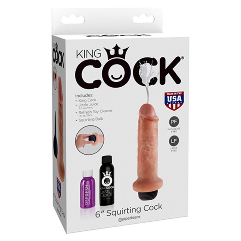 Questo King Cock Squirter è un fallo ultra-realistico perchè è in grado sempre di soddisfare al meglio tutte le vostre voglie di giochi umidi ! Fatto a mano con attenzione unica  ai dettagli e con la nostra esclusiva pompetta Jizzle, i King Cock Squirter sono i falli dildo che eiaculano più efficaci sul mercato! Ogni King Cock Squirter è privo di ftalati, privo di lattice, ipoallergenico, e orgogliosamente made in USA.