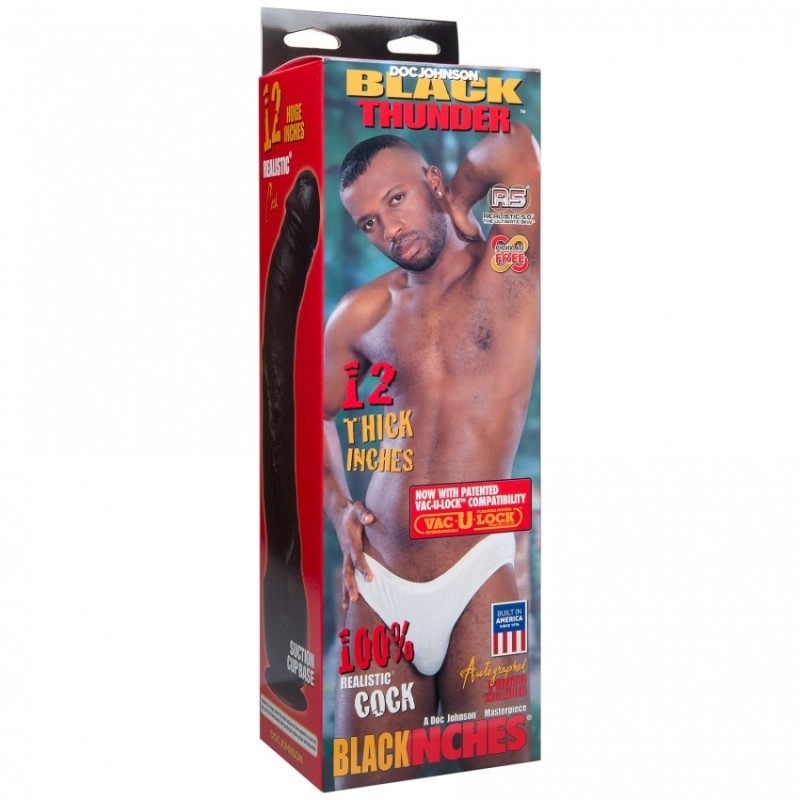 Non c'è nulla di sottile nel Dong Realistico Black Thunder da 12" di Doc Johnson. Il fenomeno del porno Black Thunder è disponibile per il vostro divertimento. Questo pene ricurvo con testicoli da 12 pollici cattura perfettamente ogni dettaglio, con una ventosa rimovibile compatibile con Vac-U-Lock per una corsa senza intoppi. Realizzato con il nostro materiale Realistic®, che lo rende il più realistico possibile. Ricavato direttamente dal suo pene pulsante, è lo strumento perfetto per il lavoro. Prodotto orgogliosamente in America.