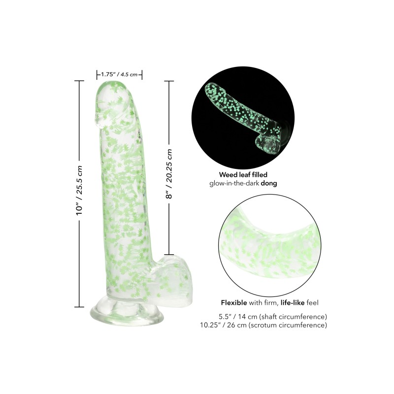 Il dong Naughty Bits I Leaf Dick Glow in the Dark Weed Leaf è un vero e proprio spettacolo di fumo! Questo giocoso dong è realizzato con una sensazione di vita, una base a ventosa e un disegno di coriandoli di foglie d'erba fosforescenti. Offre il piacere che desideravi con un'asta strutturata lunga 8 pollici, una testa realistica e palline realistiche. Il design estremamente flessibile lo rende estremamente confortevole. La base flangiata è dotata di una robusta ventosa che può essere utilizzata con un'imbracatura o montata su una superficie piana per un sensazionale divertimento a mani libere. La collezione Naughty Bits è fatta per risaltare in qualsiasi comodino con design accattivanti e caratteristiche orgasmiche. Il materiale ultra-plush e i coriandoli giocosi di questo dong birichino faranno sorridere anche l'amante più elegante prima e dopo ogni utilizzo.