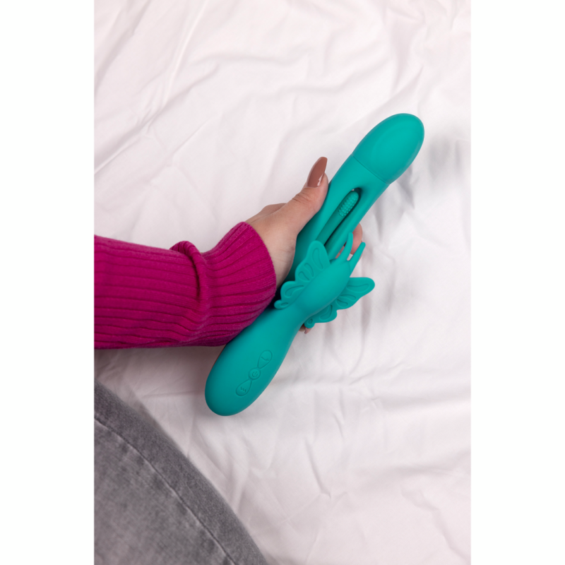Questo vibratore a farfalla Flapping G-spot è progettato per la stimolazione simultanea del clitoride e del punto G, creando orgasmi misti. Scoprite infiniti momenti di gioia e sorpresa esplorando il piacere con questo vibratore Loveline.