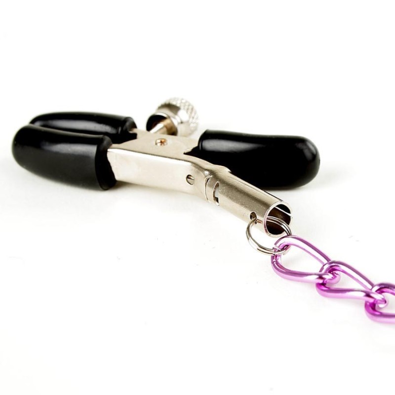 Catenella con pinze per capezzoli regolabili  . Stimulating Nipple Chain . Attaccate la vostra preda con queste mollette per seno . Le pinze per capezzoli fanno più paura di quanto dovrebbero . Ma con queste mollette non dovrete temere di soffrire troppo grazie alla regolazione potrete decidere di che dolore godere. I capezzoli grazie a questo oggetto bondage andranno a svegliare le terminazioni nervose stimolandole .