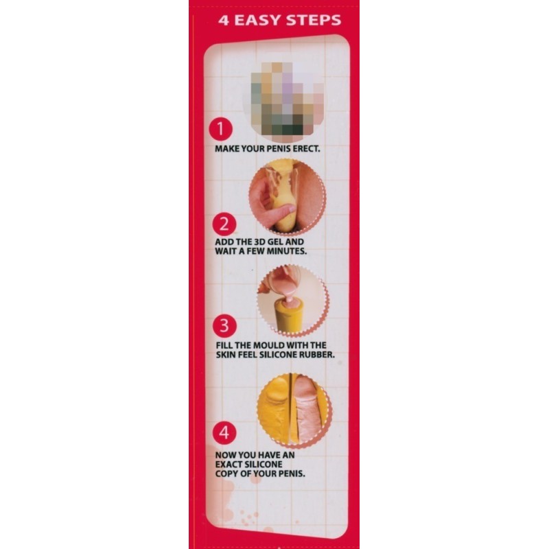 Così individuale come il modello, così facile come fare il dolce - e una buona idea avere LUI sempre a portata di mano. Amato dalle coppie come gioco e passatempo, da LUI come regalo speciale all’amante. Oltre alla confezione, che serve come stampo, il set è composto da: cinghia per pene, manicotto, flacone con indurente, 2 x 3-D-Gel, gomma siliconica, 1 paio di guanti di plastica, spatola di legno, istruzioni d’uso dettagliate. Sufficiente per la dimensione del pene (eretto) fino a 20 cm di lunghezza e Ø fino a 4 cm.