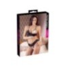 Completino intimo sensuale in morbido pizzo floreale con coppe abbottonate. La vista posteriore si diletta con un elaborato risvolto. La corda di accompagnamento ha una cintura in pizzo extra larga. Il suo cavallo completamente aperto incornicia il tumulo di Venere con due elastici.