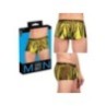 Pantaloni aderenti in giallo neon brillante con stampa nera alla moda. Fantasticamente elastico e con elastico in vita coperto per un comfort molto piacevole da indossare e una libertà di movimento illimitata.