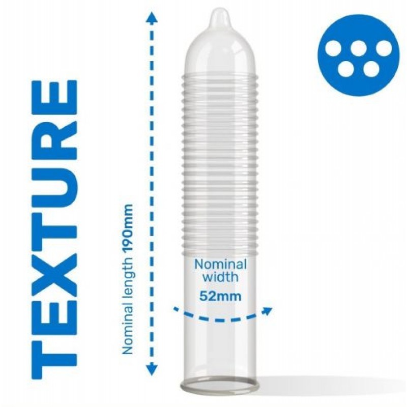 I Pasante Passion sono preservativi trasparenti in lattice con forma classica e con serbatoio che offrono un comfort maggiore ed una vestibilità migliore. Questi profilattici sono caratterizzati da una superficie ricoperta da una speciale filettatura che regala un piacere extra al/alla partner durante il rapporto. La confezione contiene 144 preservativi già lubrificati, senza alcol e con una larghezza nominale di 52 mm. Garantiscono intense sensazioni di piacere e, se utilizzati correttamente, tutelano la donna da gravidanze indesiderate e proteggono entrambi i partner da malattie sessualmente trasmissibili.