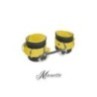 Manette in vera pelle (con interno scamosciato per un maggior comfort)unite da un moschettone doppio in ferro nichelato. Prodotto artigianale 100% Made in Italy.