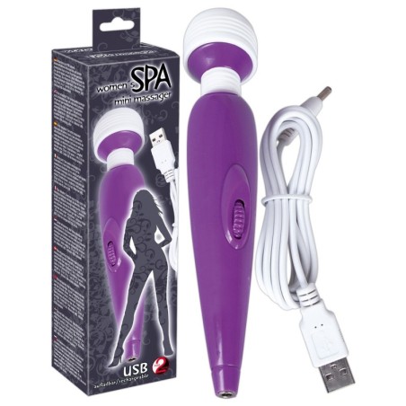 Vibro massaggiatore Women`s Spa Mini Massager con testa rotante e diversi livelli di vibrazione. Utilizzabile in molti modi. Questo oggetto è l`ideale per massaggiare le parti intime e non solo. Effetto benessere e stimolazione sessuale garantito! Caratteristiche: Lunghezza 20 cm, Diametro 1 - 3.4 cm, Materiale: ABS, senza ftalati, Batterie: ricaricabile incorporata con cavo USB incluso