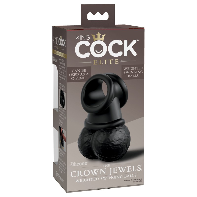 Preparati per i gioielli della corona! Queste palline oscillanti di King Cock Elite sono dotate di silicone Elite morbido come la seta all'esterno, palline di silicone rigide all'interno e un anello a C super elastico che funziona perfettamente con la maggior parte dei dildo, vibratori e persino cazzi! Usando i gioielli della corona oscillanti come un anello a C, aggiunge un nuovo livello di divertimento a schiaffi alla tua vita amorosa. Queste palline oscillanti sono un must per ogni collezione reale!
