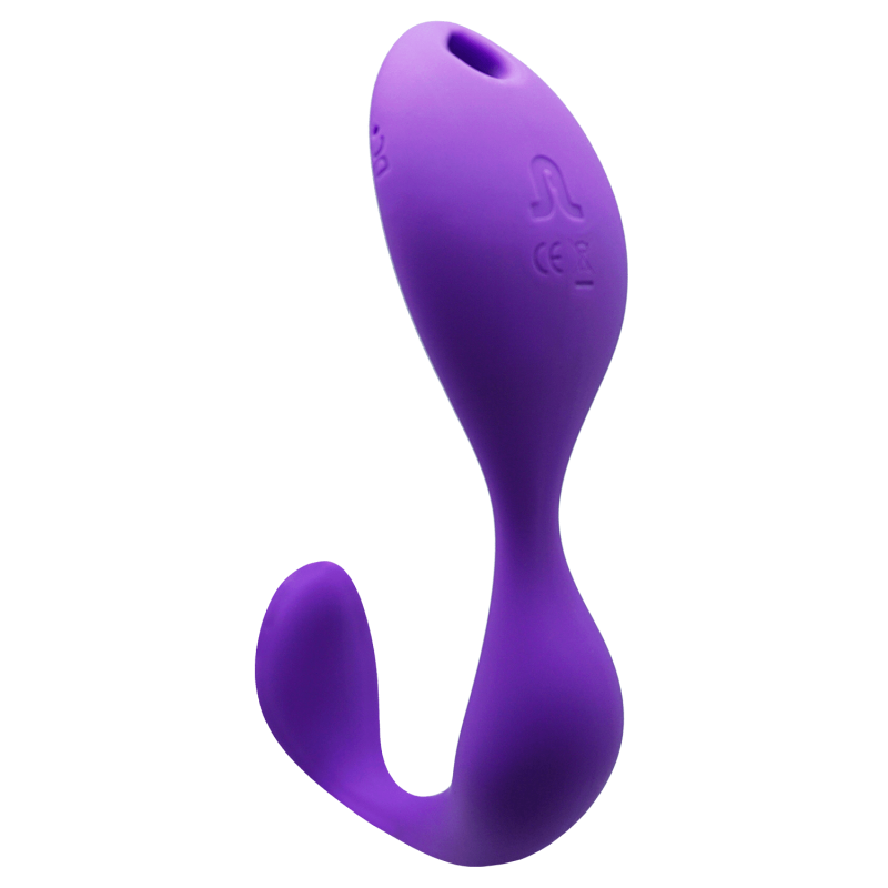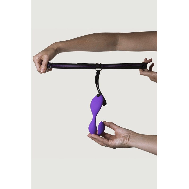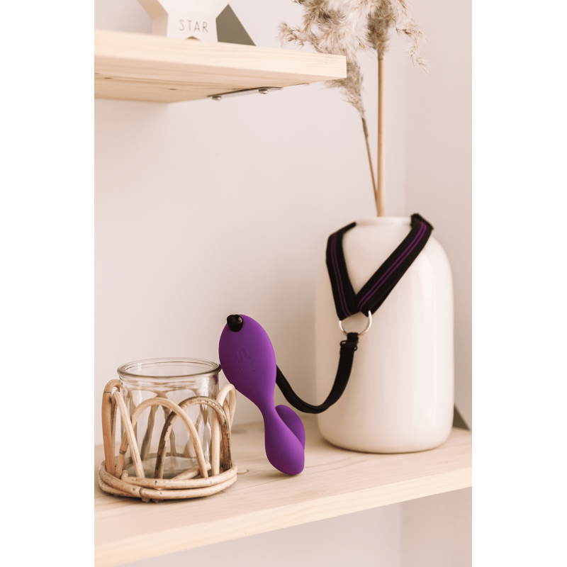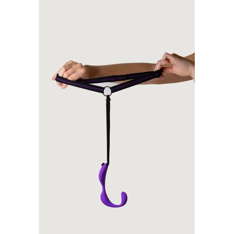 Con il suo design ergonomico, questo doppio vibratore a mani libere è in grado di stimolare contemporaneamente il clitoride e il punto G.