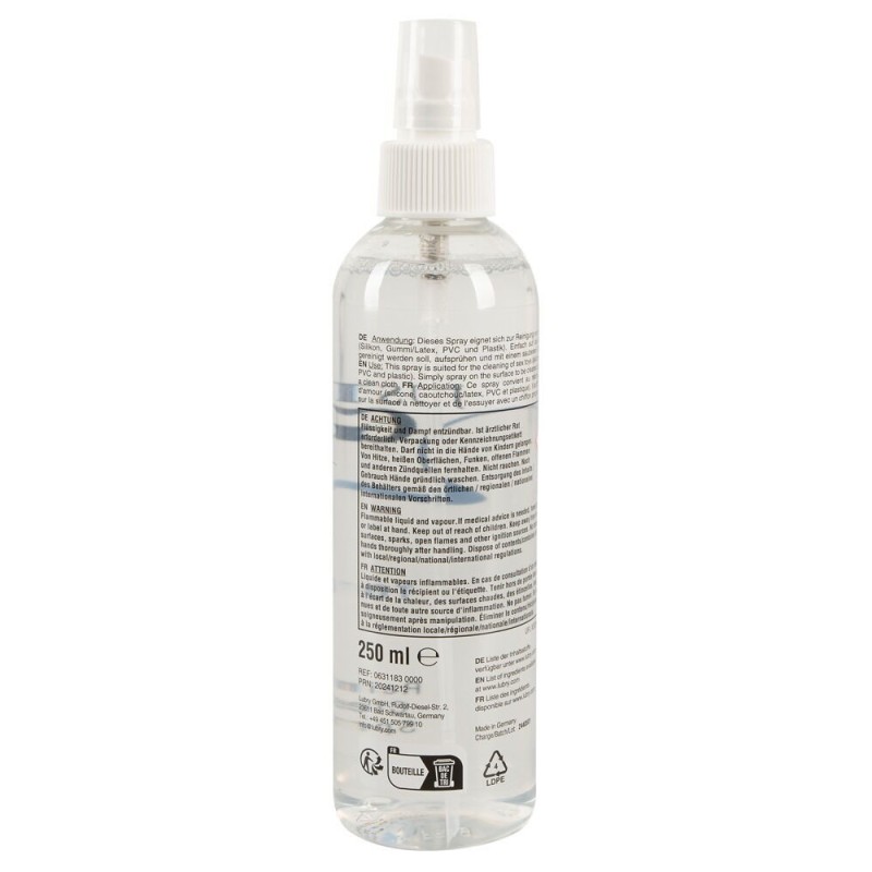 Spray detergente di alta qualità Per giocattoli in silicone, gomma/latex, PVC e plastica Facile e veloce da usare Detergente potente e delicato per i giocattoli! Spray detergente per giocattoli di Just Glide per giocattoli d'amore in silicone, gomma/latex, PVC e plastica. Basta spruzzare e pulire con un panno pulito. Molto economico: bastano pochi spruzzi per una pulizia perfetta. 250 ml. Utilizzare sempre i detergenti in modo sicuro. Leggere sempre l'etichetta e le informazioni sul prodotto prima dell'uso. Tenere fuori dalla portata dei bambini.