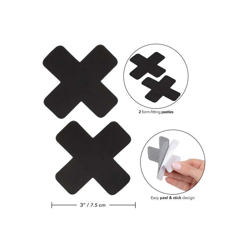 Date alle vostre conquiste un aggiornamento seducente con gli audaci Boundless 2 Nipple Pasties. Questi sexy pasties sono pronti a giocare grazie al design aderente, al nastro autoadesivo e all'audace forma a "X". Il design aderente e il nastro autoadesivo sono fatti per i giochi prolungati e possono rimanere al loro posto indipendentemente da quanto vi agitate e vi dimenate. Gli affascinanti pasticci per capezzoli sono l'aggiunta perfetta a qualsiasi look da festival musicale, rave, Pride o come lingerie. Facile applicazione - Pulire accuratamente e asciugare la posizione desiderata, staccare e attaccare il nastro adesivo e premere saldamente in posizione per garantire un'usura duratura. Per ottenere risultati ottimali, evitare l'uso di lozioni o oli sul luogo prima dell'uso e applicare qualsiasi trucco/gioiello/brillantini dopo aver applicato i pasties.