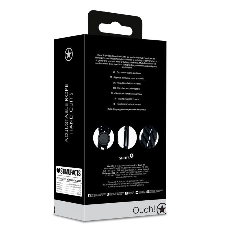 Queste manette regolabili in corda sono un must assoluto se cerchi un gioco BDSM più eccitante! Usale per legare le mani del tuo partner ed esplorare un mondo di possibilità emozionanti. Realizzate in materiale robusto ma delicato, queste manette in corda danno priorità al tuo comfort, prevenendo qualsiasi irritazione cutanea.