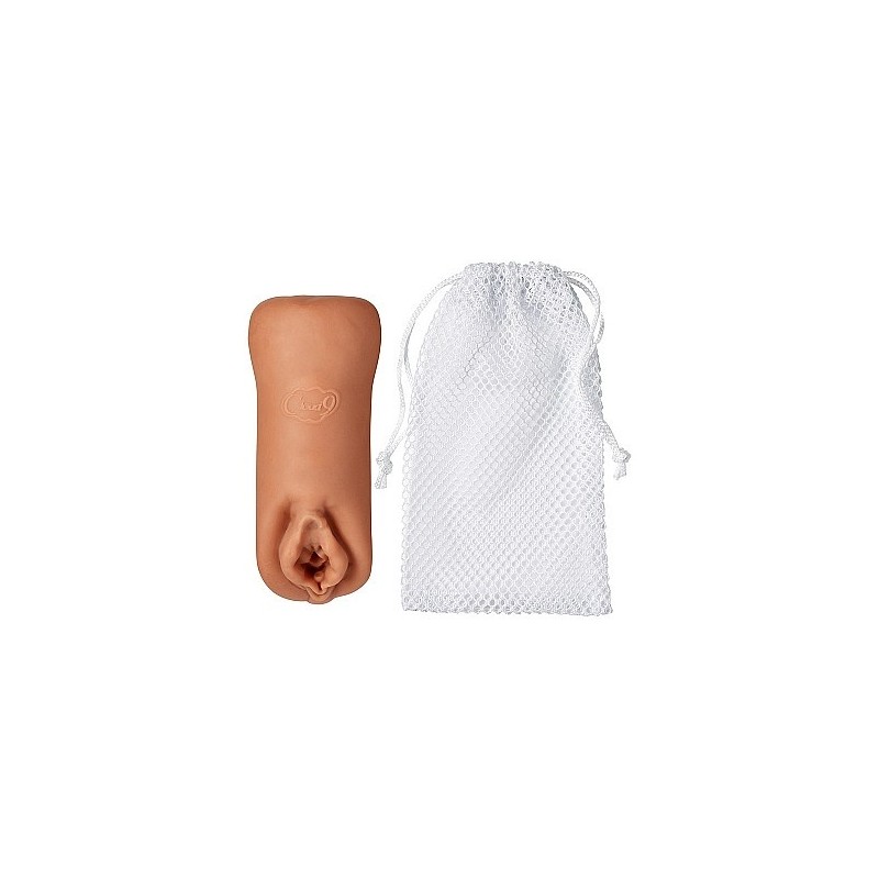 Cloud 9 Pleasure Stroker a doppia estremità per vagina e ano con sacchetto per l'asciugatura. Colore abbronzato.