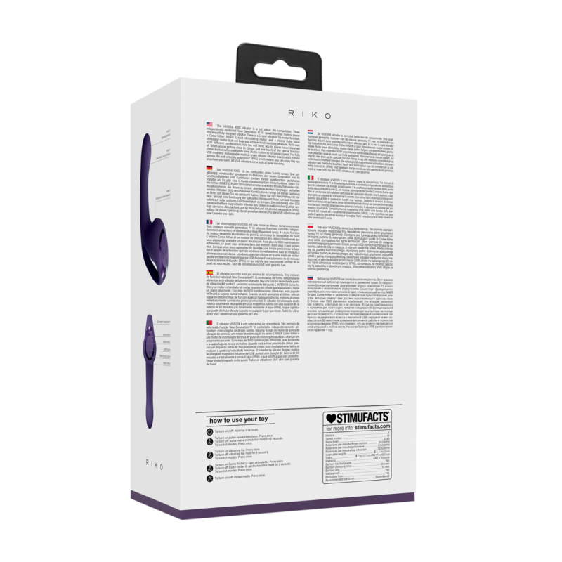 Il vibratore Riko è un modello superiore alla concorrenza. Tre motori di Nuova Generazione F1 a 10 velocità/funzioni, controllati indipendentemente, alimentano questo vibratore dal design accattivante. C'è una funzione di motore per la vibrazione della punta del punto G, un motore per la stimolazione del punto G interno e un motore per la stimolazione dell'onda clitoridea Pulse che vi aiuterà a raggiungere un piacere da capogiro. Con oltre 1000 combinazioni diverse, questo giocattolo vi porterà in luoghi mai sognati. Quando vi avvicinerete al culmine, basterà toccare il pulsante speciale climax per portare immediatamente tutti i motori alla massima potenza/velocità. Il vibratore in silicone di grado medico, ricaricabile magneticamente via USB, ha una durata della batteria di 60 minuti ed è totalmente impermeabile (IPX6), il che significa che potrete godervi questo giocattolo ovunque vogliate. Tutti i vibratori VIVE hanno una garanzia di 1 anno.