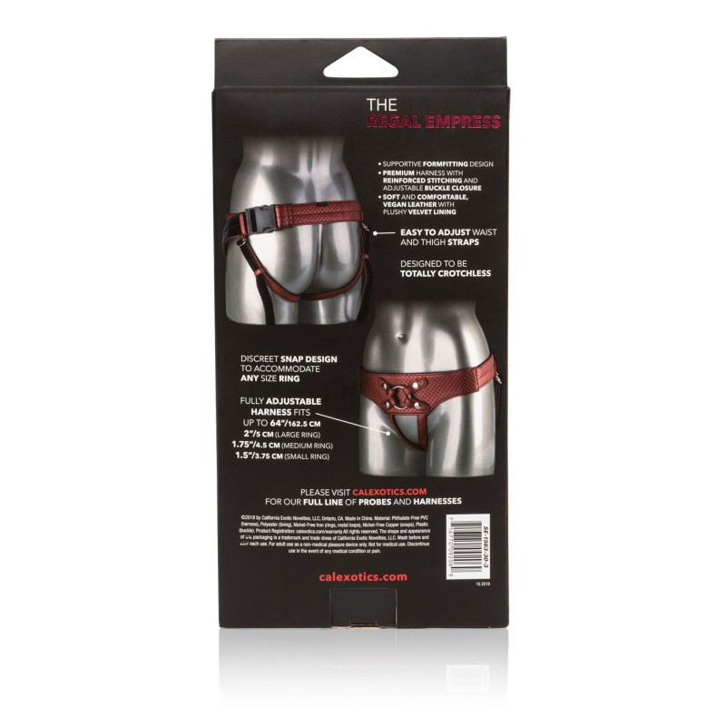 Preparati per il piacere indulgente e il gioco di sonde di alta qualità che si adatta davvero alla regalità con The Regal Queen. L'imbracatura di lusso della sua Royal Harness è fatta per una prestazione e un comfort con un design a forma di corsetto,con fodera interna morbida e cinturino regolabile. Il design audace con cavallo basso richiama anche i più dominanti con gli fatto per accogliere qualsiasi modello di fallo con ventosa di varie dimensioni. Prodotto in eco pelle di design. i dettagli in stile corsetto e la fodera in velluto felpato ti danno il massimo controllo sul comfort.