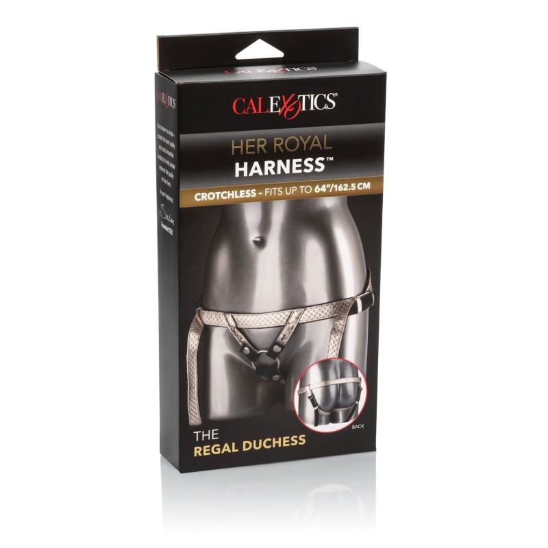 Preparati per il piacere indulgente e il gioco di sonde di alta qualità che si adatta davvero alla regalità con The Regal Queen. L'imbracatura di lusso della sua Royal Harness è fatta per una prestazione e un comfort con un design a forma di corsetto,con fodera interna morbida e cinturino regolabile. Il design audace con cavallo basso richiama anche i più dominanti con gli fatto per accogliere qualsiasi modello di fallo con ventosa di varie dimensioni. Prodotto in eco pelle di design. i dettagli in stile corsetto e la fodera in velluto felpato ti danno il massimo controllo sul comfort.
