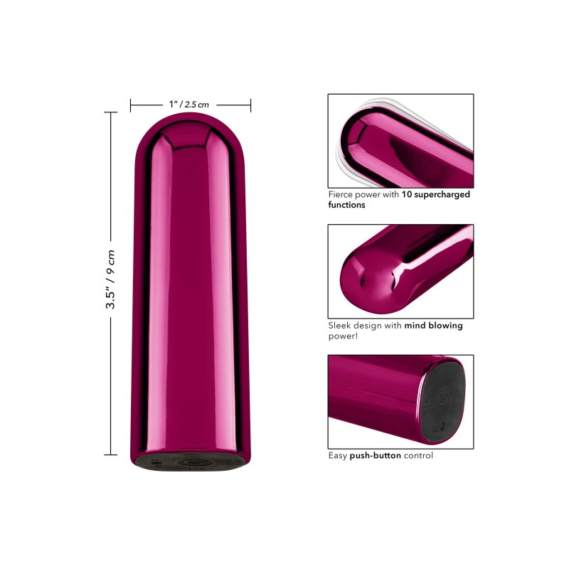 Il bullet Glam™ brillante è un bullet di potenza super-caricato imballato con 10 funzioni di vibrazione ad alta intensità. Il giocattolo del piacere pronto per il viaggio può essere infilato nella borsa o nello zaino per indulgere nel gioco della passione ovunque i tuoi viaggi ti portino. 10 funzioni di vibrazioni ad alta intensità al tocco di un pulsante, mentre il motore silenzioso mantiene il tuo tempo di gioco silenzioso. Ricarica il massaggiatore in 2 ore con il cavo di ricarica USB in dotazione per godere di 50 minuti di stimolazione ad alta velocità o 90 ore di vibrazioni a bassa velocità.