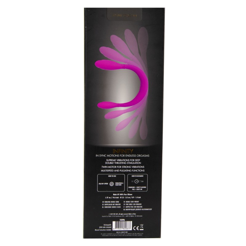 The Infinity Double Dildo di TOYJOY Designer Edition - Movimenti sincronizzati per orgasmi infiniti. Questo elegante dildo a doppia estremità offre il doppio del divertimento intimo e un'intensa soddisfazione! Infinity offre anche movimenti sincronizzati unici, che ti consentono di utilizzare entrambe le estremità contemporaneamente per un'esperienza onnicomprensiva. Questo vibratore versatile e flessibile ha una silhouette elegante e pieghevole con una punta bulbosa ad entrambe le estremità. C'è un motore ad ogni estremità, il che significa raddoppiare le vibrazioni potenti. Il design ha 3 velocità vibranti e 4 funzioni pulsanti. Realizzato in silicone morbido al tatto e ipoallergenico, è una scelta sicura per il corpo nel piacere intimo. Infinity Double Dildo è anche USB ed è estremamente facile da usare con semplici controlli a pulsante singolo. Confezionato in una lussuosa scatola che può essere utilizzata per la conservazione negli usi, nell'Infinity è un regalo perfetto per te o per un altro piacere nella tua vita.