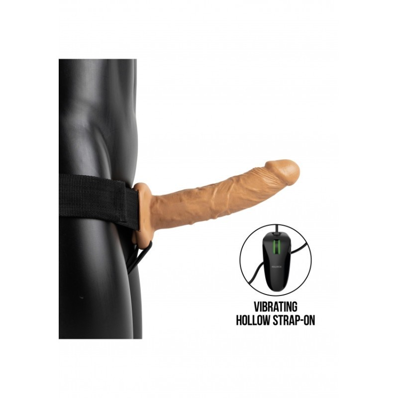 Vibratore cavo indossabile Vibrating Hollow Strap-on No Balls - 8'' / 20,5 cm - Tan