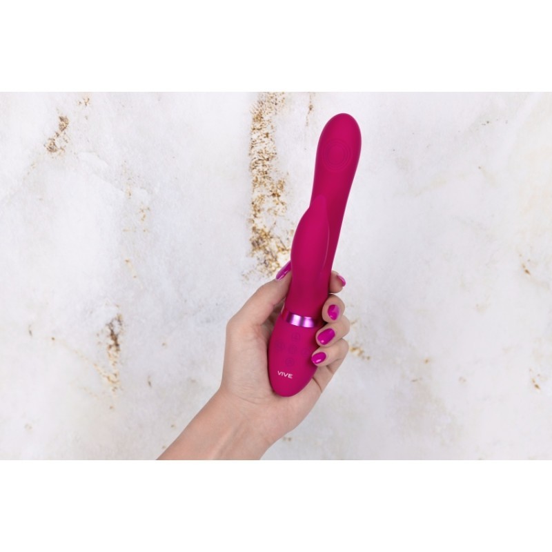AIMI è uno dei vibratori più innovativi e potenti oggi sul mercato.Grazie ai suoi tre innovativi motori F1 di Nuova Generazione con 10 funzioni e alle sue tecnologie avanzate (tutti e tre i motori possono essere controllati in modo indipendente) è davvero il top del top!La punta vibrante contiene un motore Pulse-Wave NG F1 con 10 funzioni per la stimolazione del punto G e contiene simultaneamente un motore vibrante unico NG F1 con 10 funzioni per la stimolazione del clitoride.Vibra e si muove da un lato all'altro, quindi ti lascerà senza fiato! In totale, questo giocattolo offre 100 diverse combinazioni.Realizzato al 100% in silicone di grado medicale liscio come la seta (ipoallergenico), è totalmente impermeabile (IPX7) ed estremamente silenzioso, essendo sotto i 60 dB.Ciò significa che puoi usarlo ovunque il tuo cuore desideri.Comprende una batteria agli ioni di litio ricaricabile USB magnetica che, quando completamente carica, garantisce 40 minuti di divertimento passionale.Basta collegare, caricare e giocare!Quando ti stai avvicinando all'orgasmo, un solo tocco del pulsante della funzione speciale climax porterà immediatamente tutti i motori a piena potenza e, cosa più importante, ti porterà a un orgasmo sconvolgente.Tutti i vibratori VIVE hanno una garanzia completa di 1 anno per proteggere il tuo investimento.