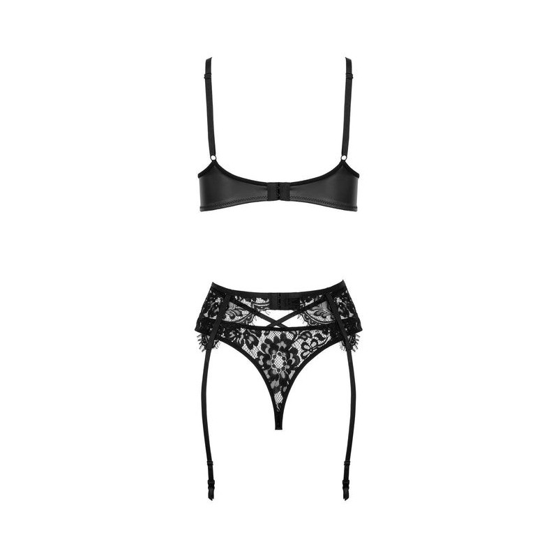 Questo set è un insieme di lingerie unico che emana eleganza e sensualità. Comprende reggiseno, reggicalze e perizoma, tutti realizzati in pizzo di alta qualità e materiali simili al lattice, che conferiscono all'intero set un aspetto incredibilmente lussuoso. Il pizzo è stato progettato per offrire scorci sottili e allo stesso tempo fornire un eccellente sostegno al seno. Le coppe morbide del reggiseno si adattano perfettamente al corpo, accentuando e mettendo in risalto il seno. Il reggiseno è dotato di ferretti per un sostegno e un modellamento superiori, nonché di spalline regolabili per una vestibilità perfetta. Il set comprende anche un sexy reggicalze dal design unico. Sia il reggiseno che il reggicalze sono fissati sul retro con una chiusura a gancetto, per garantire stabilità e comfort. Le cinghie della giarrettiera sono regolabili individualmente. Il perizoma completa il set, accentuando sensualmente le forme femminili. Questo set è la scelta perfetta per le donne che cercano lusso e seduzione.