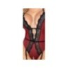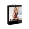 Body ouvert di Abierta Fina in nobile rosso coccoloso opaco con inserti in pizzo nero che guidano la silhouette davanti e dietro. Fascia in vita saldamente cucita per un'ulteriore enfasi. Scollatura profonda con cinghie di collegamento e 2 catene staccabili in glitter argento. Anche la catena stimolante nel cavallo aperto è rimovibile, così come le bretelle regolabili. Nella profonda scollatura posteriore 2 cinghie elastiche con chiusura a clip. Le spalline sono regolabili.