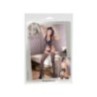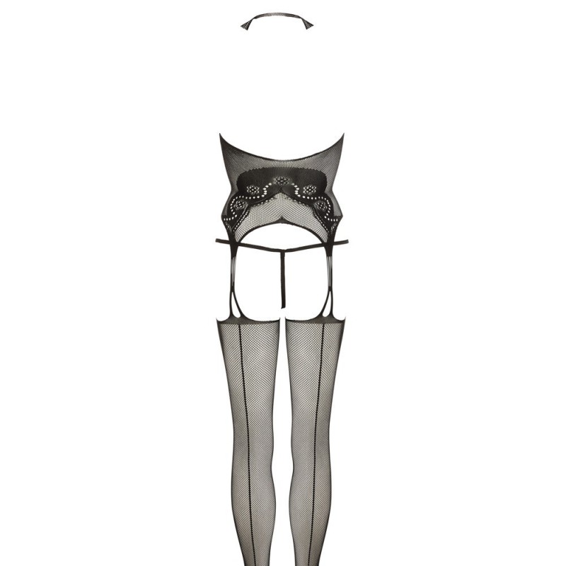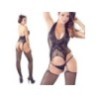 Sexy tutina in un pezzo unico. Elasticizzata, su base a rete rifinita in pizzo. Bellissimi gli intagli. Il top si collega alle calze con una delicata stringatura sia davanti che sul retro. Ottima vestibilità ed aderenza.
