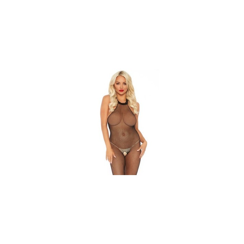 Tuta a rete con apertura intima bodystocking fishnet halter black