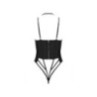 Questo body off-shoulder mozzafiato presenta un design straordinario realizzato con materiali di alta qualità simili alla pelle. Il taglio raffinato accentua perfettamente la vostra femminilità, mentre le coppe con ferretto offrono un sostegno ottimale. Le spalline regolabili assicurano il massimo comfort e una vestibilità impeccabile che abbraccia magnificamente il corpo. Una comoda cerniera sul retro facilita l'indossamento e la rimozione. L'elemento distintivo è il design unico sulla schiena, evidenziato da bande elastiche che aggiungono un tocco speciale. Il design a taglio alto allunga le gambe, completando il look elegante. Questo body è la scelta perfetta per le donne che desiderano combinare eleganza e seduzione in un capo di lingerie che mette in risalto le loro curve.