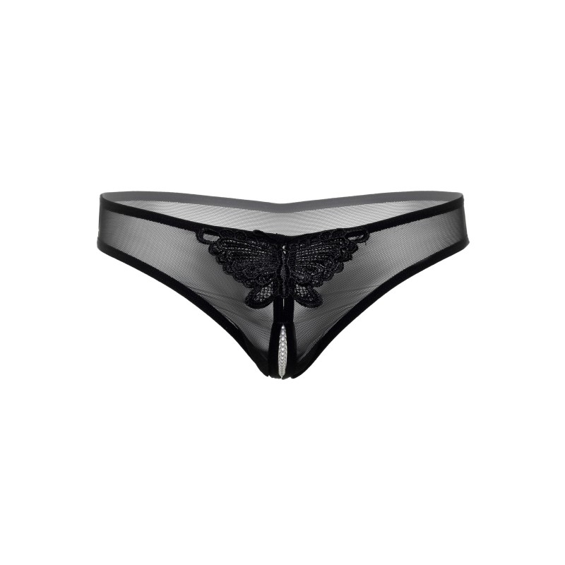 Indra, perizoma inguinale con perline. Perizoma crotchless in rete trasparente con farfalle applicate e perle finte all'apertura del cavallo. - Realizzato con materiali di alta qualità - Mutandine di lusso a un prezzo accessibile - Disponibile nelle taglie: S/M e L/XL - Confezione senza plastica