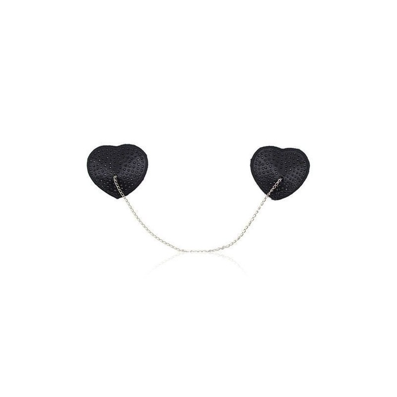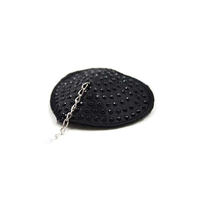 Cosa è? Delle nappe copricapezzoli di colore nero a forma di cuore unite da una catenella, un semplice sensuale capo d'abbigliamento da Toyz4Lovers per rendervi più seducenti, far impazzire di desiderio i vostri partner e rendere più piccanti i vostri amplessi. A Cosa serve? Indossati sui capezzoli questi sexy tasselli costituiscono un eccitantissimo capo d'abbigliamento. Associateli ad altri prodotti della linea Fetish Art di Toyz4Lovers se volete spingervi un po' più oltre nel campo del bondage e del sadomaso, oppure indossateli da soli se volete semplicemente aggiungere un pizzico di pepe e malizia al vostro look e raffinare le vostre potenzialità di seduzione. Come si usa? I copricapezzoli sono adesivi e si applicano facilmente sui capezzoli.